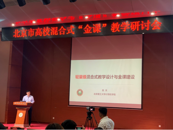 10月11日,为推进现代信息技术与教育教学深度融合,打造线上线下混合式“金课”,由我校和东西部高校课程共享联盟共同主办,智慧树网承办的北京市高校混合式“金课”教学研讨会在我校逸夫报告厅举行,副校长张宝钧出席大会。