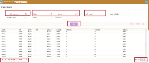 4、列表显示出来的教室,即为空闲教室。列表中还有教室的具体信息。